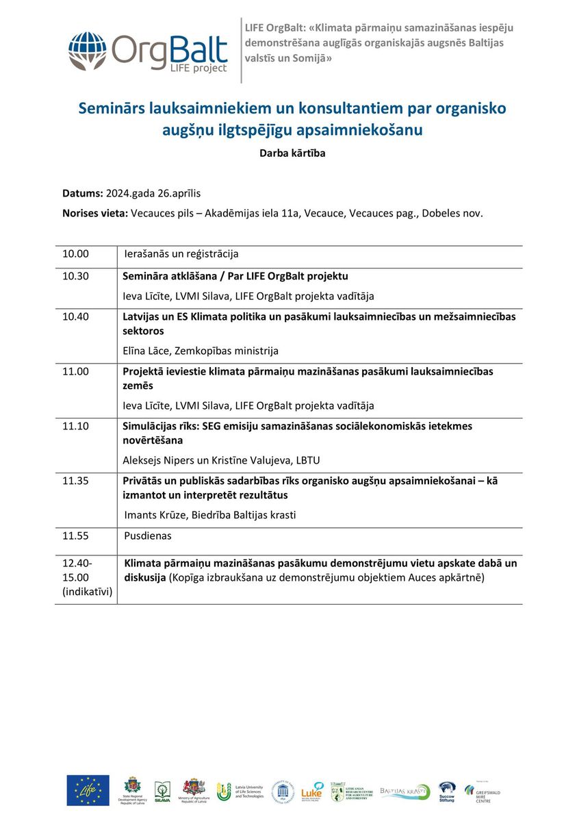 Informācija atspoguļo tikai LIFE OrgBalt projekta īstenotāju viedokli, un Eiropas Klimata, infrastruktūras un vides izpildaģentūra (CINEA) nav atbildīga par jebkādu šeit ietvertās informācijas iespējamo izmantošanu.
