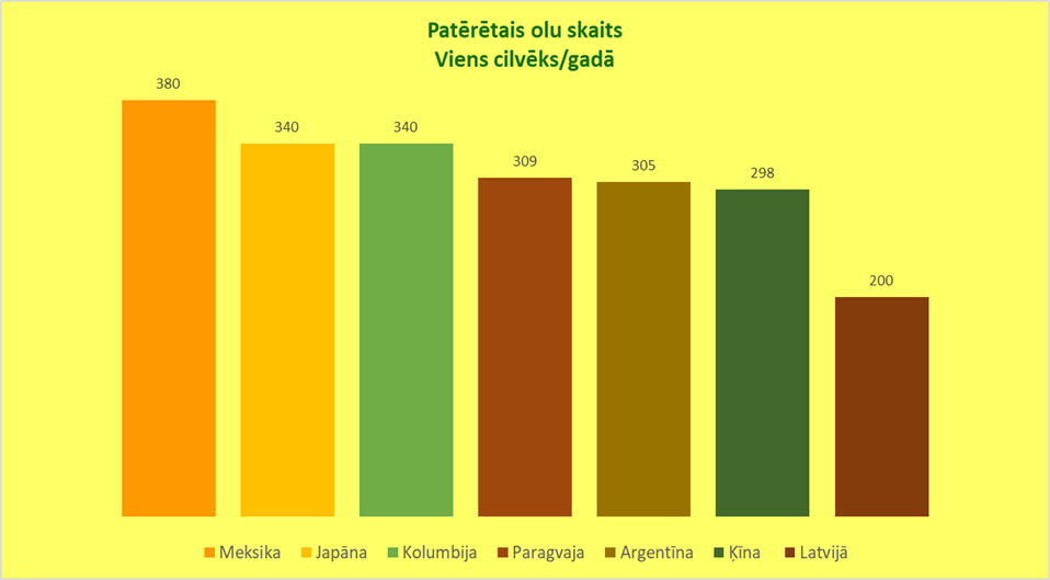Valstis, kurās cilvēki patērē visvairāk vistu olas uzturā gada laikā: