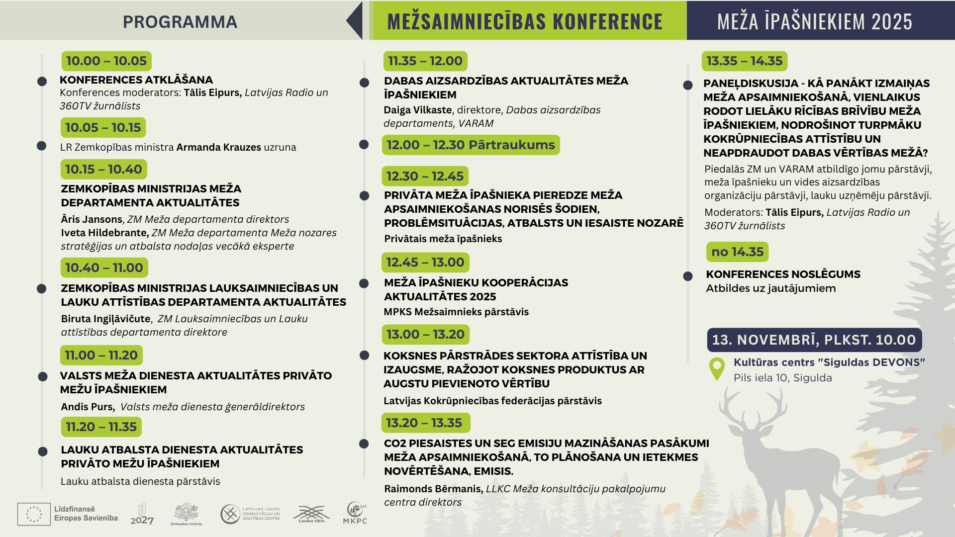 Zemkopības ministrs Armands Krauze piedalīsies mežsaimniecības konferencē un uzrunās tās dalībniekus – privātā meža īpašniekus, apsaimniekotājus, nozares uzņēmējus. Konferencē runās par meža īpašnieku aktualitātēm un norisināsies paneļdiskusija par to, kā panākt izmaiņas meža apsaimniekošanā, vienlaikus nodrošinot lielāku rīcības brīvību meža īpašniekiem, veicinot kokrūpniecības attīstību un saglabājot dabas vērtības mežā. Vairāk informācijas par konferenci – LLKC tīmekļvietnē.